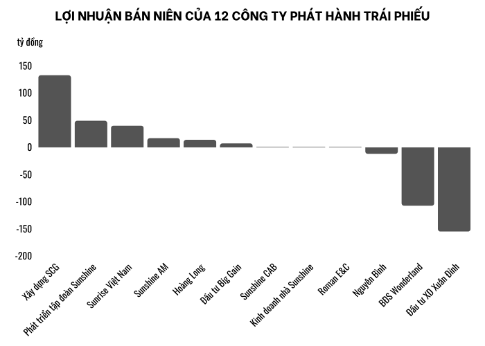 Nhiều công ty huy động trái phiếu nhóm Sunshine báo lỗ hoặc lãi thấp trong nửa đầu năm 2025 do nguồn thu phụ thuộc vào tiến độ của 1 hoặc 1 số ít dự án. Ảnh: T.D tổng hợp từ HNX